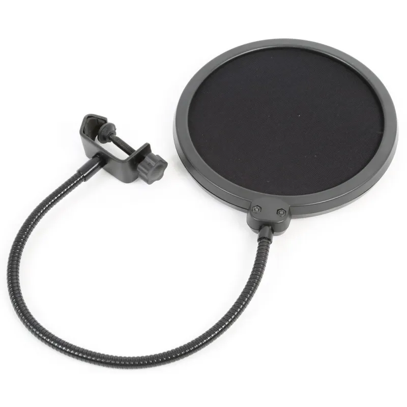 The flexible arm allows the filter to be positioned easily in front of the microphone.