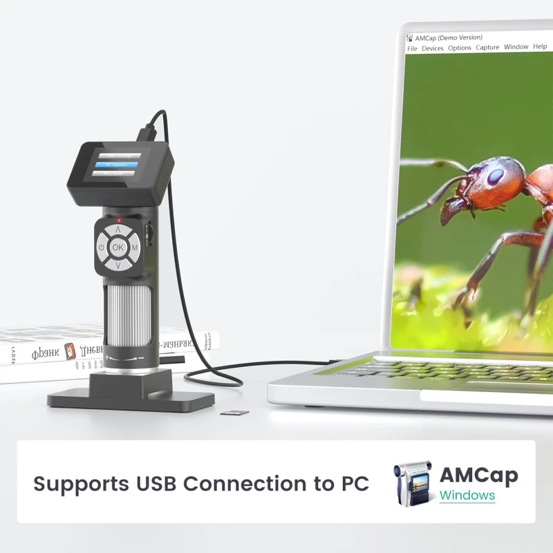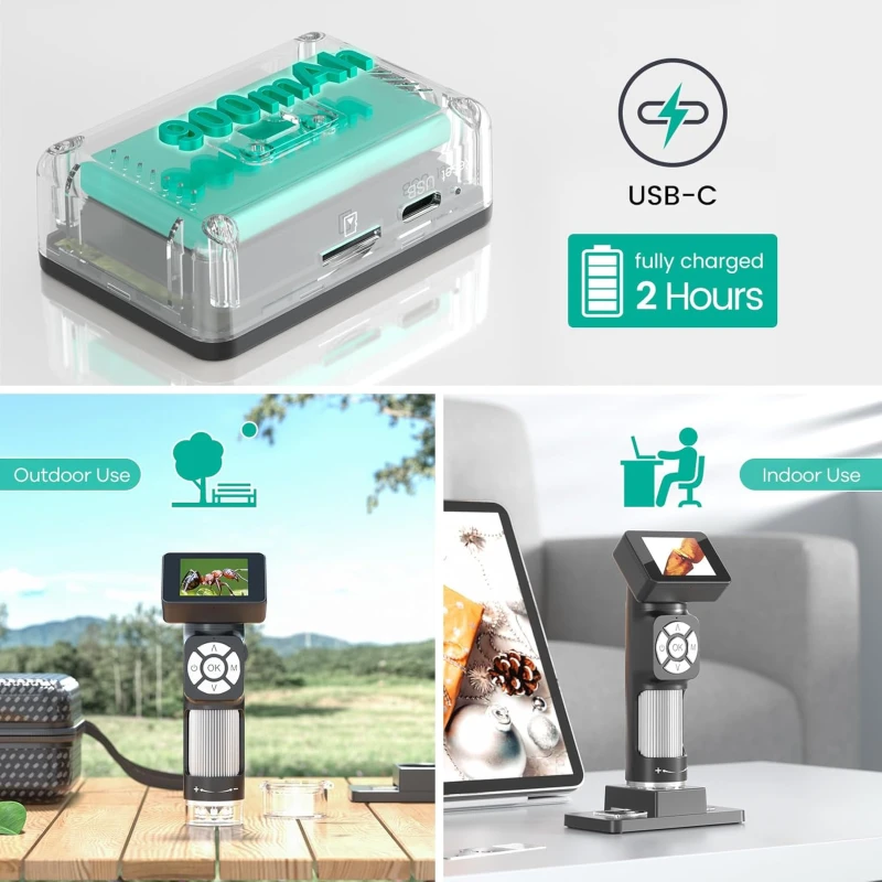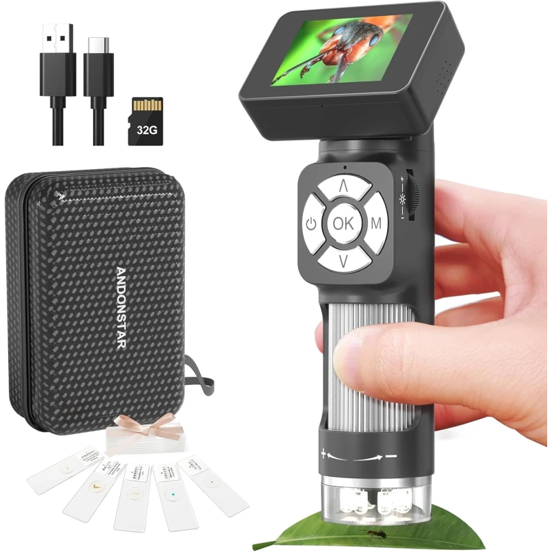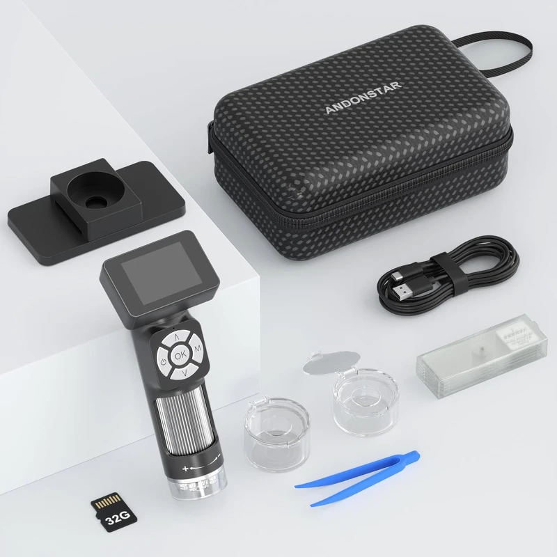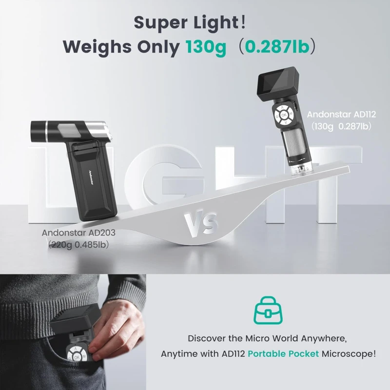 The Andonstar AD112 is an ultra-light and portable digital microscope, designed for both children and adults. It offers versatile magnification and integrated features for observation, recording, and sharing.