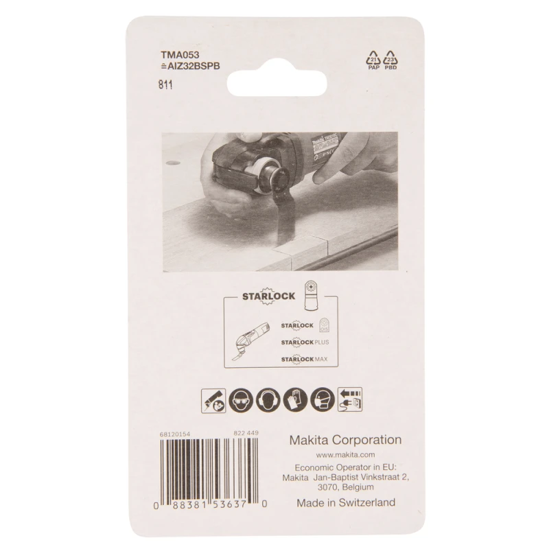 Are you looking for a high-quality saw blade that can handle wood, plywood, and epoxy? Then the Makita TMA053 is just for you! This 32 mm wide bi-metal (BIM) saw blade is specially designed for precise and clean wood cutting. Thanks to the STARLOCK mounting, installing and changing the blade is quick and easy, saving you valuable time. 14 teeth per inch (TPI) ensure smooth and efficient cutting, minimizing vibration and guaranteeing excellent cutting quality.