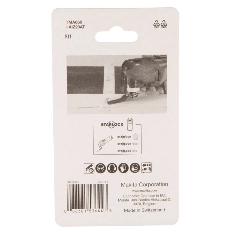 Looking for a reliable and efficient saw blade that can handle a variety of materials? Then the Makita TMA060 is just for you! This universal cross-cutting blade with STARLOCK mounting is specifically designed for cutting metal, stainless steel, aluminum, fiberglass, and drywall. Thanks to the blade made of tungsten carbide and hard metal (TC/HM), a long service life and precise cutting are guaranteed. The 20 mm wide and 40 mm working length blade is equipped with 23 teeth per inch (TPI), ensuring a smooth and fast cut. Whether it's finishing complex details or large-scale work, the Makita TMA060 offers you professional results. The package includes one blade.