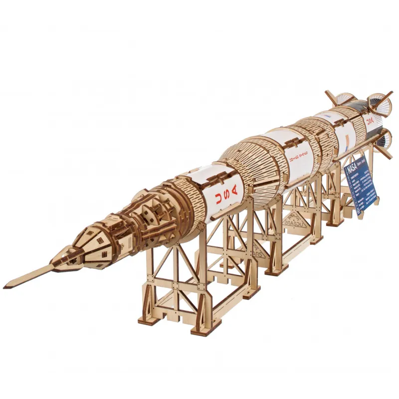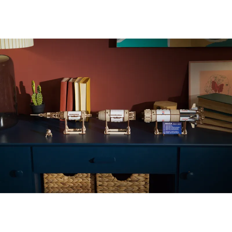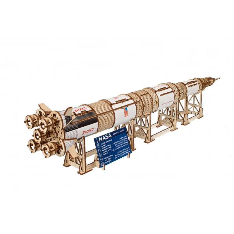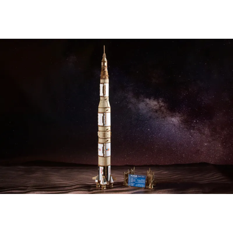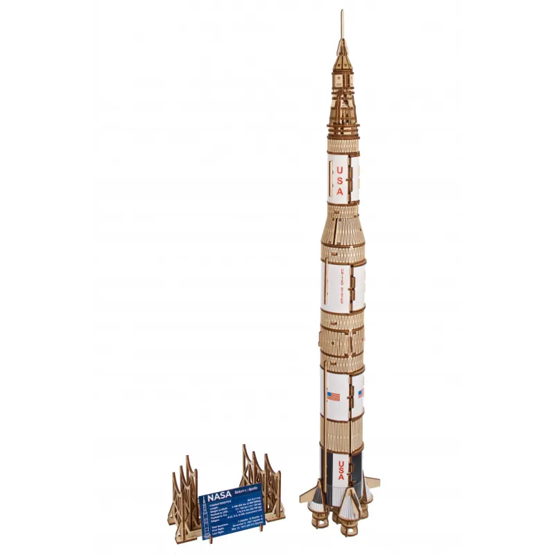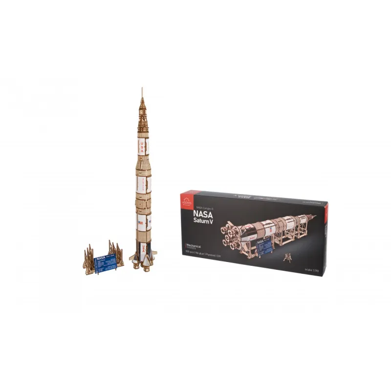 The Ugears NASA Saturn V Three-Stage Rocket is an advanced level designed for experienced builders and will be a majestic display in your living room, bedroom or office. Like all Ugears wooden models and 3D puzzles, the Saturn V and all its components are assembled without glue and can be built without special tools, following step-by-step illustrated instructions in 11 languages (English, Ukrainian, German, Spanish). , French, Italian, Portuguese, Polish, Japanese, Chinese and Korean). Crafted from art-grade composite wood, Ugears models can be left in their attractive natural wood condition or stained, stained or painted in your chosen color scheme (paints not included). The Saturn V kit includes a number of spare parts in case anything breaks during assembly.