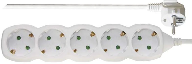 Vastupidav 3-meetrine pikendusjuhe viie kaitstud pesaga. Ideaalne kodu- ja kontoriruumidesse, tagades 16A koormustaluvuse ja IP20 kaitse.