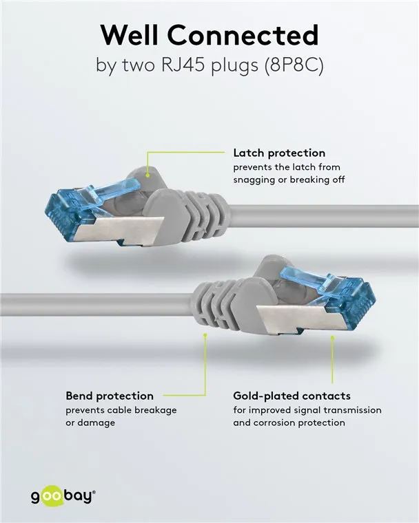 The Goobay Cat 6a network patch cord (SKU 93659) is a high-performance solution designed for reliable data transmission in high-speed networks reaching up to 10 Gbps.