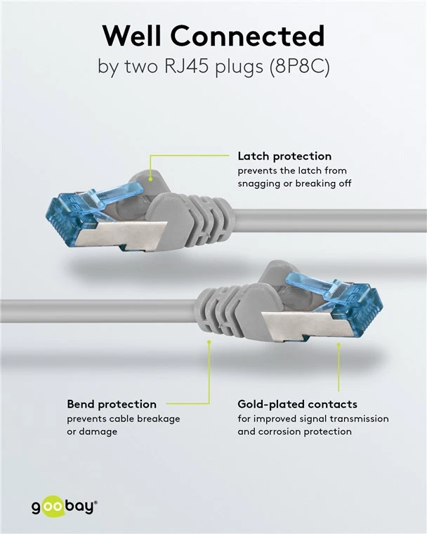 This high-quality Goobay CAT 6A patch cord is engineered for high-speed data transmission, supporting speeds up to 10 Gbps with a 500 MHz bandwidth. It provides a reliable solution for professional networking environments requiring stable and high-performance connectivity.