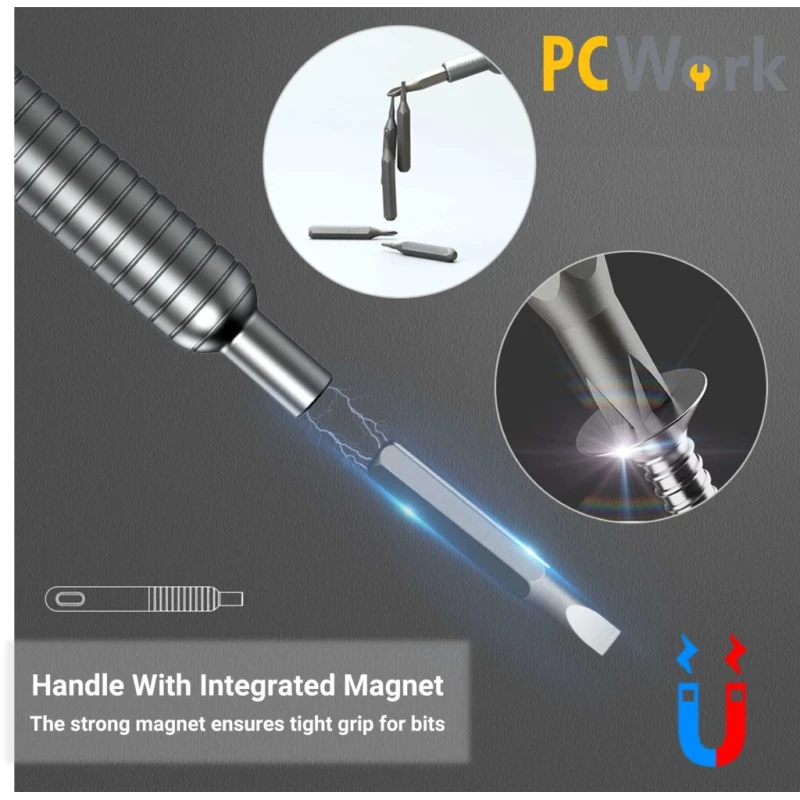 The bits are firmly kept in place by the strong magnet integrated in the handle.
