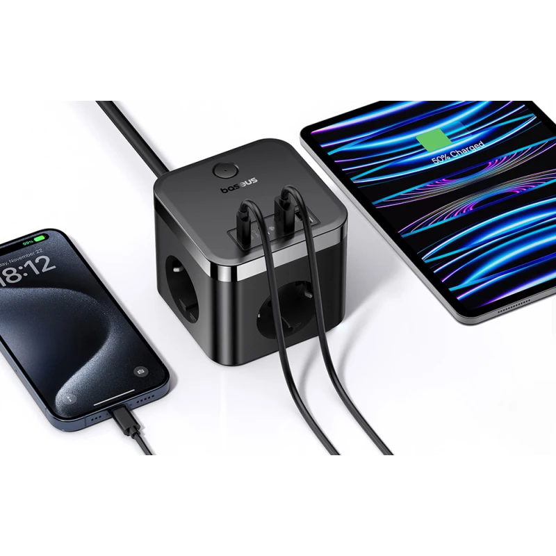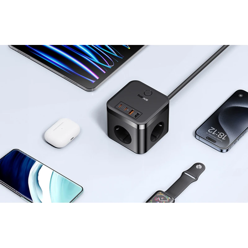 The Baseus PowerCombo is designed for ease of use. Users simply plug the extension cord into a wall outlet to gain access to additional AC outlets and USB charging ports. The arrangement of ports on multiple sides of the charger enhances usability. Some models also feature a smart button for easy on and off control of the power strip.