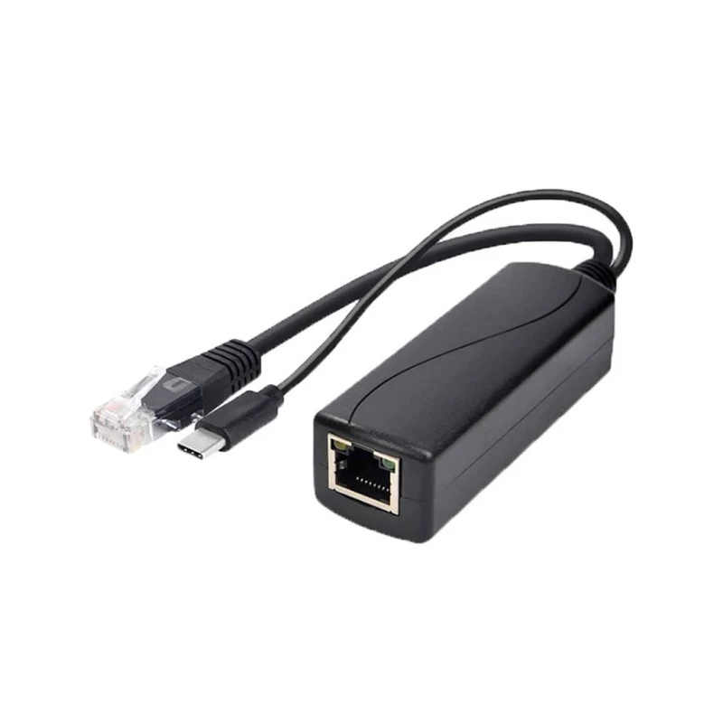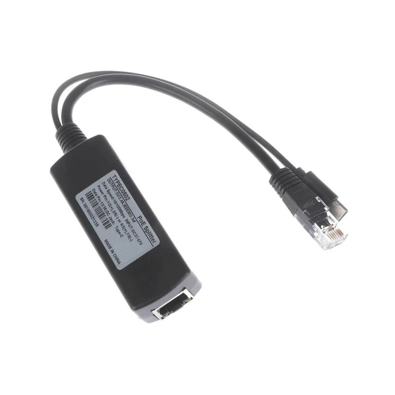 This is an active Power over Ethernet (PoE) splitter module designed to deliver power to various devices over a Local Area Network (LAN). It converts the incoming PoE signal into power delivered via a USB-C connector.