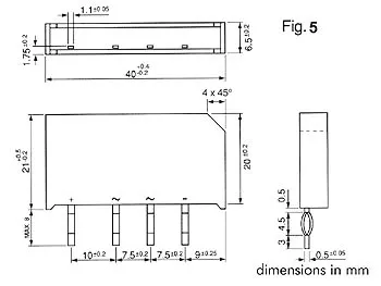 Type number: B40C3700/2200 Ifsm (peak current): 150A Vf (forward voltage): 1.1V Vrrm (reverse voltage): 40V max. Ir (reverse current): 20µA Package: fig. 5 Io (rectified current): 3.7A max.
