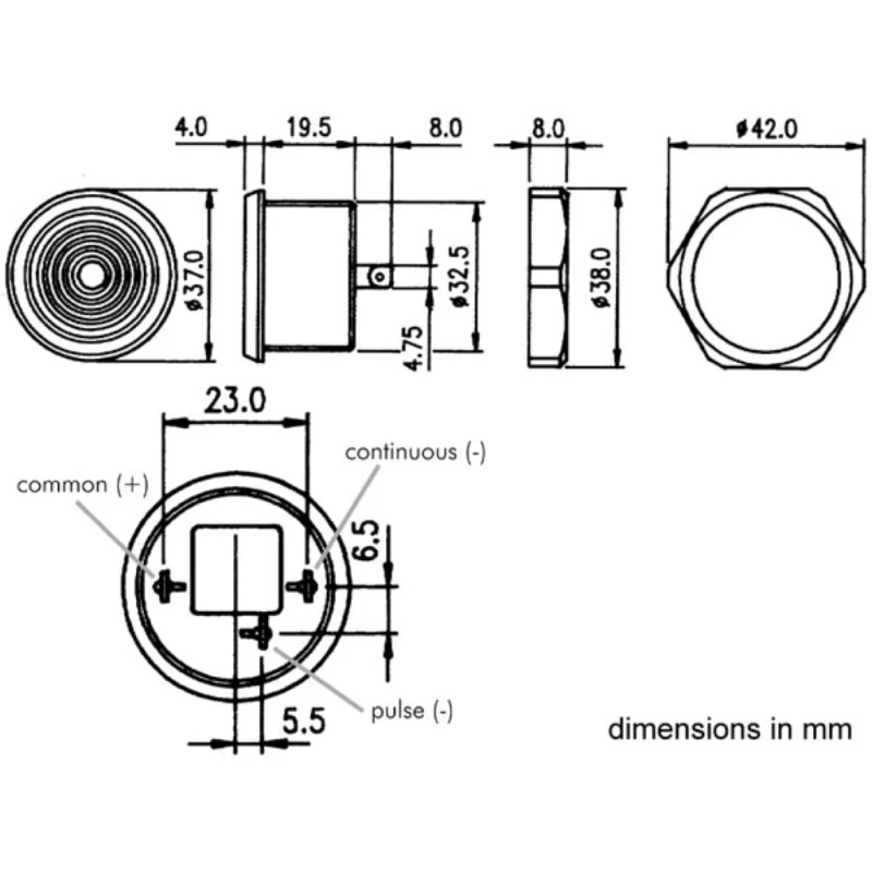 PANEL-MOUNTING BUZZER 4-28Vdc / 8mA PCB TYPE