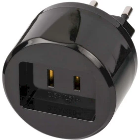 The travel plug in black for the socket is ideal for traveling and on vacation.