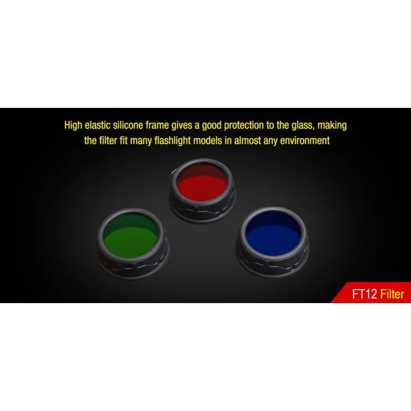 FT12 Flashlight filters have high elastic silicone frame which gives a good protection in almost any environment. Filters are compatible with 45mm bezel. The Blue filter is great for hunting because it makes blood trails stand out by making the blood appear black, which makes it easier to track an injured animal. Blue light won´t attract insects. It works with night vision equipment, produces less disturbing light, and is good for navigation or map reading as it show contour lines better than red.