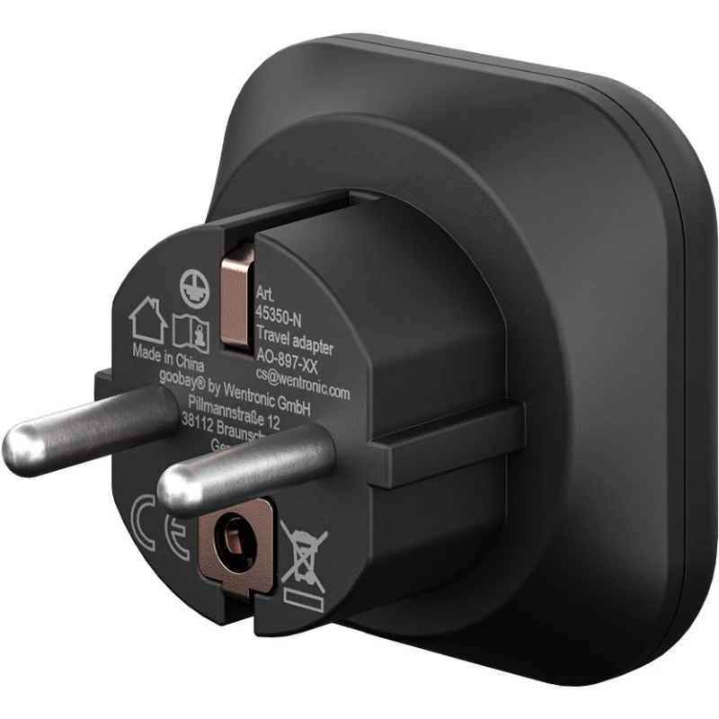 Thanks to its compact design, the plug adapter can be stored in a space-saving way in your luggage