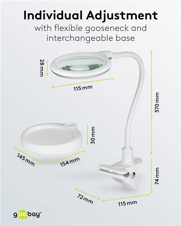 LED Magnifying Lamp with Base and Clamp, 6 W, white