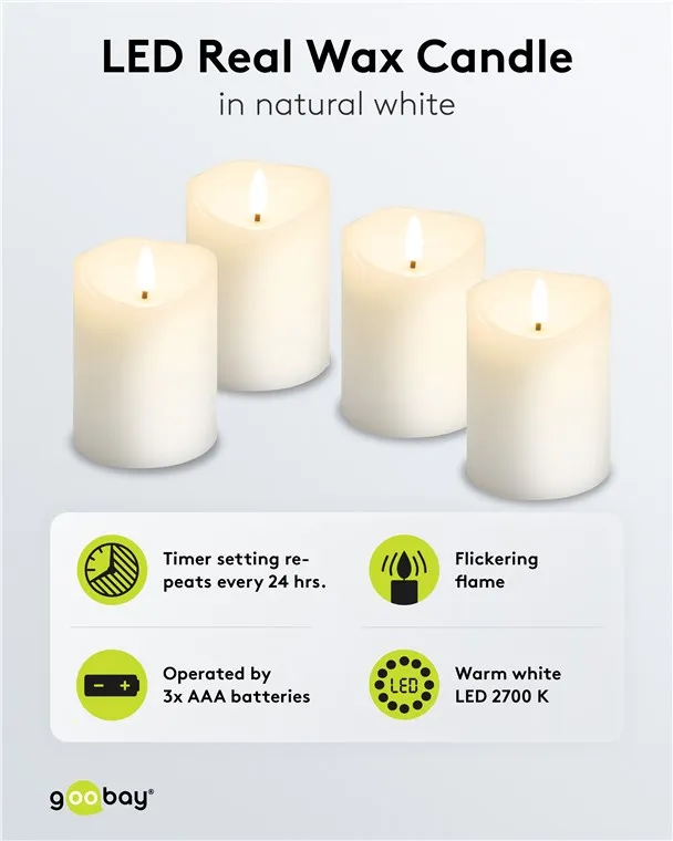 Set of 4 LED Real Wax Candles, white, incl. 12x AAA (LR03)