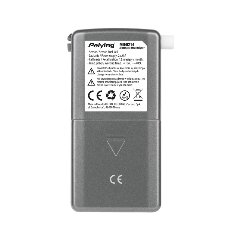 Reliable Measurements The new generation electrochemical sensor in the Peiying KT-571 breathalyzer, combined with wide functionality, guarantees a precise reading with an accuracy of up to 0.005%. An additional advantage of the device is the ability to change measurement units to %, ‰ or mg/L and the function of memorizing the last five measurements.