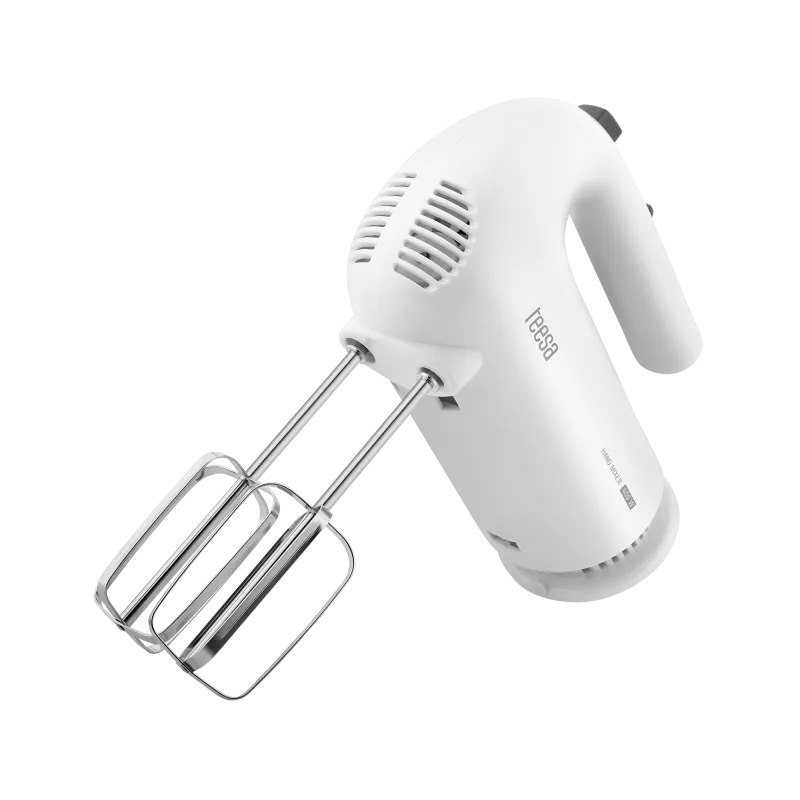 Teesa TSA3536 Hand Mixer Do you like serving your guests delicious desserts? We have a device for you that will help you realize your culinary passions. The Teesa TSA3536 hand mixer combines compact size and high power of 400 W, so it will help you quickly and conveniently conjure up homemade delicacies. 5 Speeds, Turbo and Versatility! TSA3536 is a mixer that is not afraid of your culinary whims. Five speed settings and the Turbo function, combined with a set of beaters and dough hooks, ensure that all creams, cakes, masses and sauces prepared by you will be perfect.