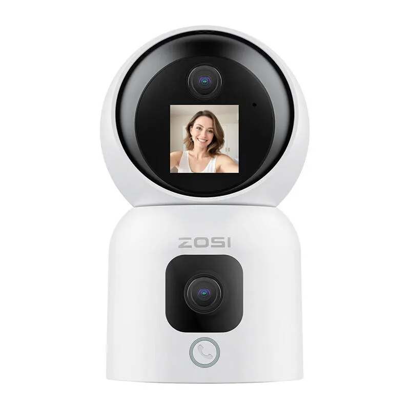 The ZOSI C528M supports dual video transmission, allowing simultaneous transmission of 3MP (23041296) and D1 (640360) quality video. The 1.44-inch screen displays date, time, weather, temperature and humidity. In addition, two-way video calling and automatic motion tracking features make the camera ideal for everyday use in the home.
