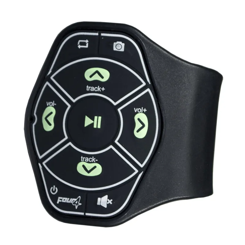 Very handy remote controller to all bluetooth devices like phones and tablets. You have track selection, volume control, pause and play at your fingertips. Works in 15 meter distance. Adjustable holder for installation to steering wheel.