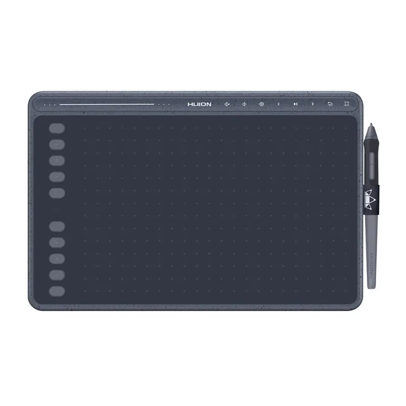 The Huion HS611 graphics tablet offers 10 buttons and a touch bar that can be freely programmed. Assigning selected functions speeds up work and reduces dependence on the keyboard.