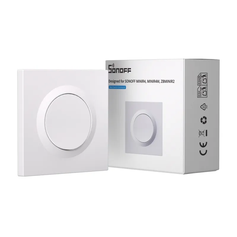 Sonoff E1GS is an ultra-thin wall switch housing from the Fusion series, designed for modern interiors and compact installations. It requires a neutral (N) wire connection and requires one of the compatible Sonoff modules ZBMINIR2, MINIR4M or MINIR4. The housing is designed for installation in standard European boxes (round 60 mm or square type 86).