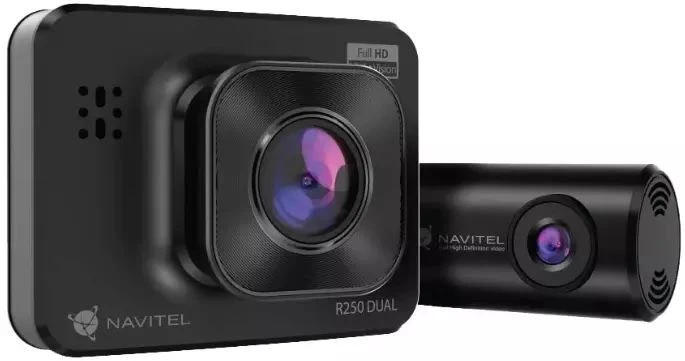 NAVITEL R250 DUAL is a new modern compact dashcam with an additional rearview camera.