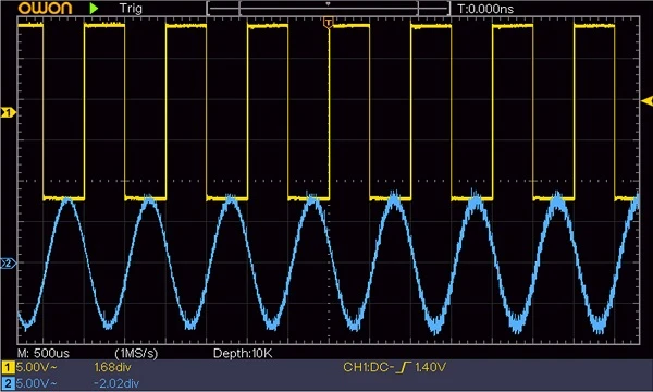 Functionality: The OWON® SDS1022 is very well-equipped with various options. Automatic setup allows the waveform to be displayed without any complex configuration, while still offering users the ability to perform fine-tuning as needed. Simultaneously monitoring and comparing two different signal sources is a great advantage, enabling faster achievement of desired results when measuring multiple interdependent signals.