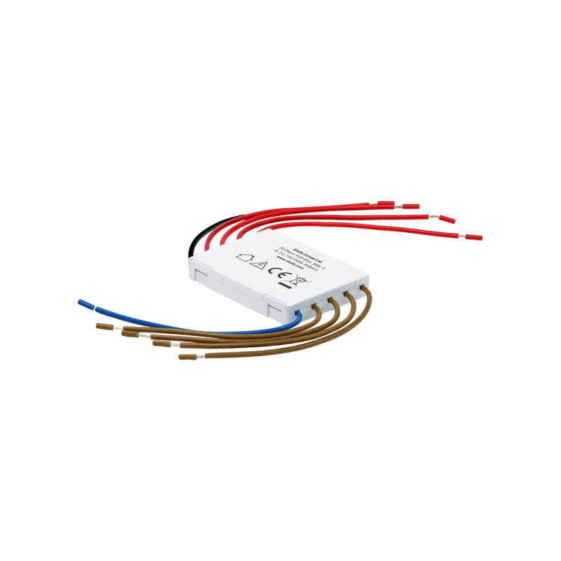 This module is essential for complex smart home systems, allowing existing AC wall switches to safely control DC inputs on smart devices without the risk of high-voltage exposure. It is specifically designed for use with DC input modules such as the Shelly Plus RGBW PM, Shelly Pro RGBWW PM, Shelly Plus Uni, and Shelly Plus Add-On.