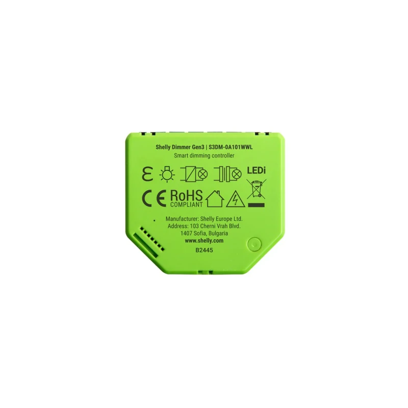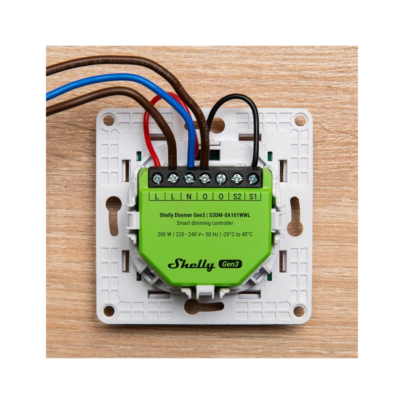 The Shelly Dimmer Gen3 is a Wi-Fi-operated smart dimming controller designed for the seamless remote control of dimmable lights and drivers. This advanced device offers exceptional flexibility and can be installed in configurations with or without a neutral wire, making it suitable for a wide range of electrical setups.