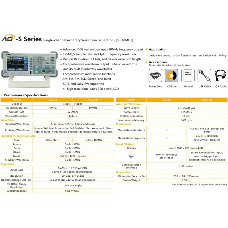 - Advanced DDS technology with 10MHz frequency output and 1μHz resolution.