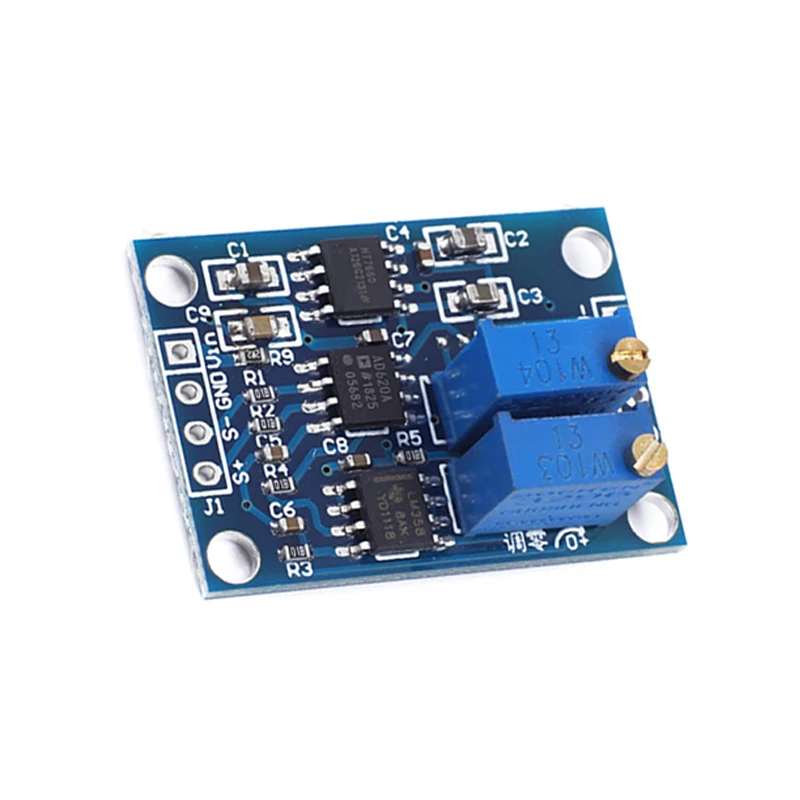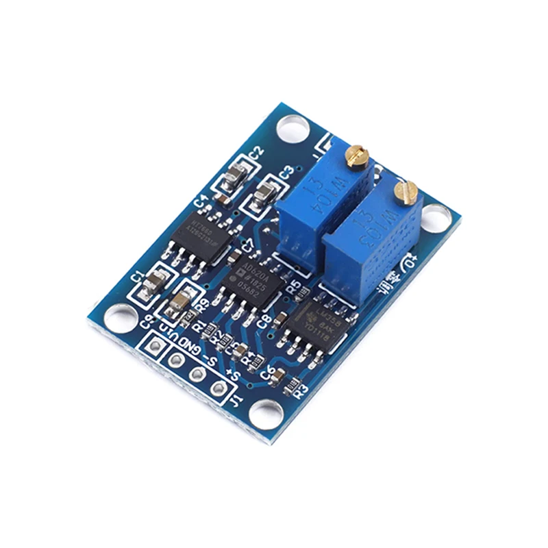 This instrumentation amplifier module, based on the Analog Devices AD620 IC, is engineered for the high-precision amplification of weak signals in the microvolt and millivolt range. It is designed to process both DC and AC signals, making it a versatile component for sensitive measurement tasks.