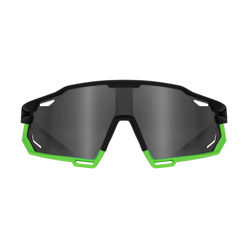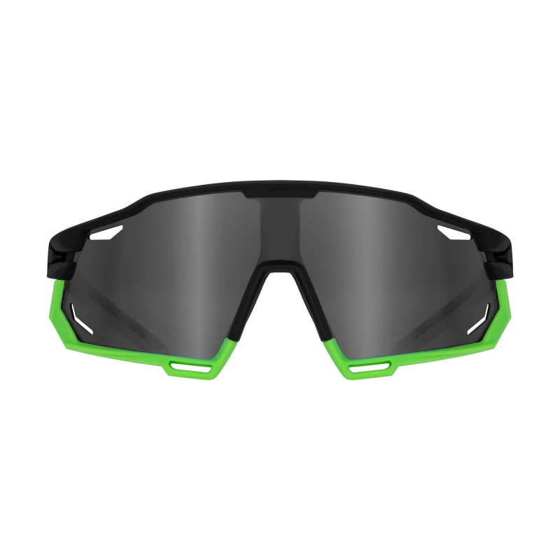 The frame is made from high-quality, lightweight plastic, offering a perfect balance between impact resistance and wearing comfort. With a dynamic black and green color scheme, these glasses provide a distinctive look that stands out at the gym or on a run.