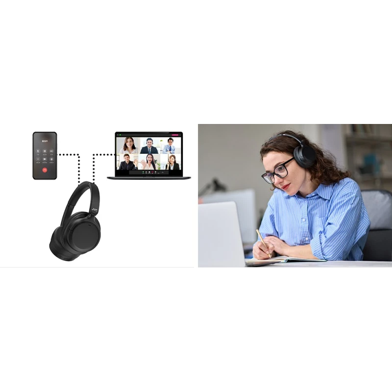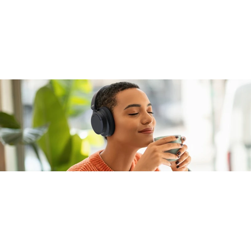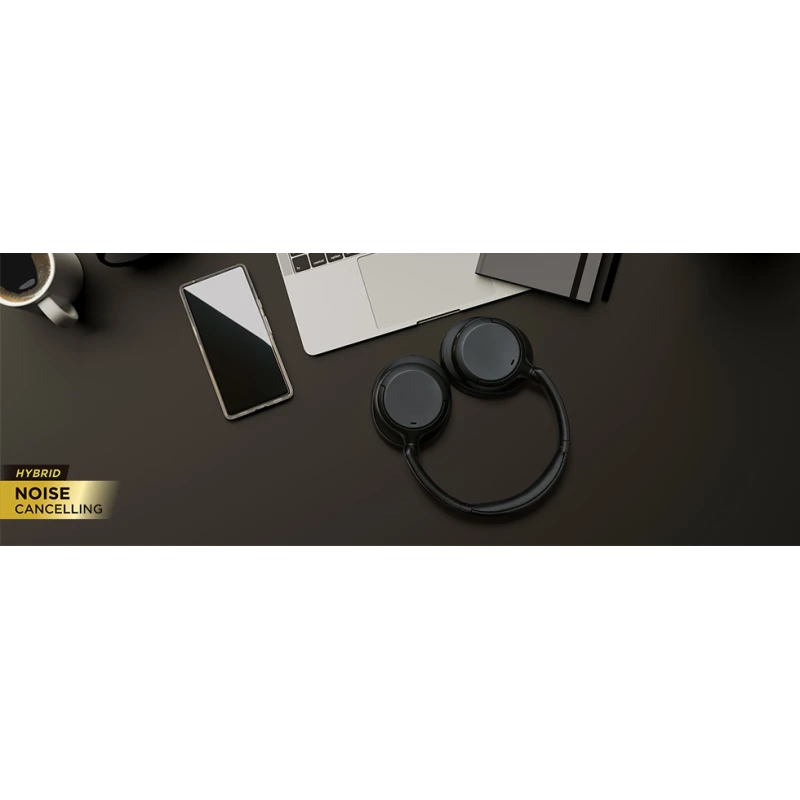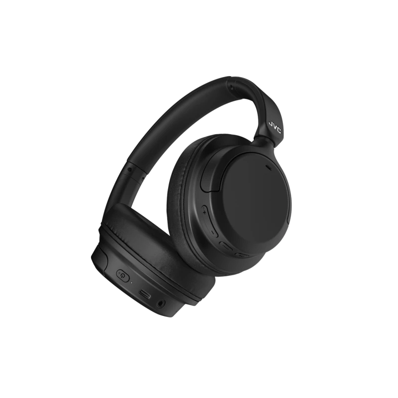 JVC hybrid noise-cancelling lightweight headphones, weighing only 195 grams. Soft and comfortable ergonomic ear pads ensure long-lasting comfort.
