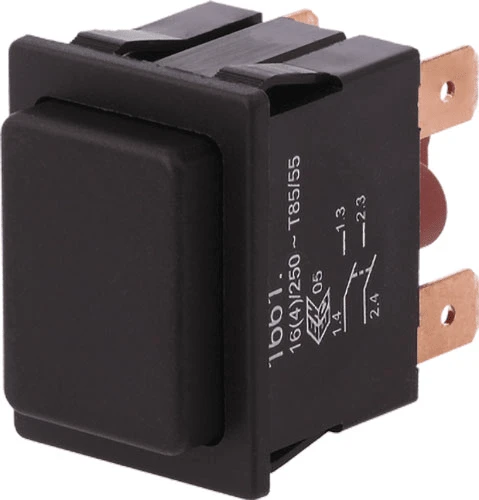 Must nupplüliti, 2 asendit, DPST-NO, 16A/250VAC, IP40, pistikühendused 6,3x0,8 mm.