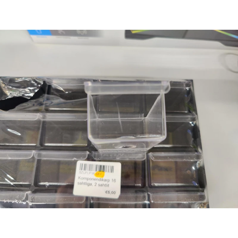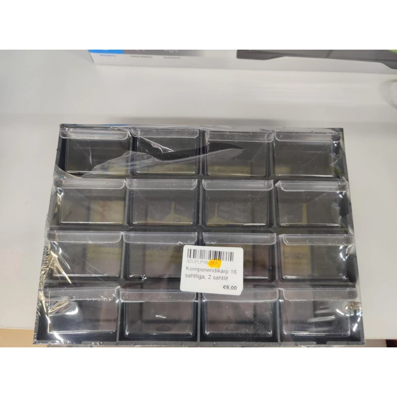 16 plastist sahtliga moodul. Mooduleid on võimalik omavahel kombineerida. Mooduli mõõtmed: 220x70x160mm. Sahtli mõõtmed: 47x66x31mm.Sobib suurepärast väikeste komponentide hoidmiseks.
