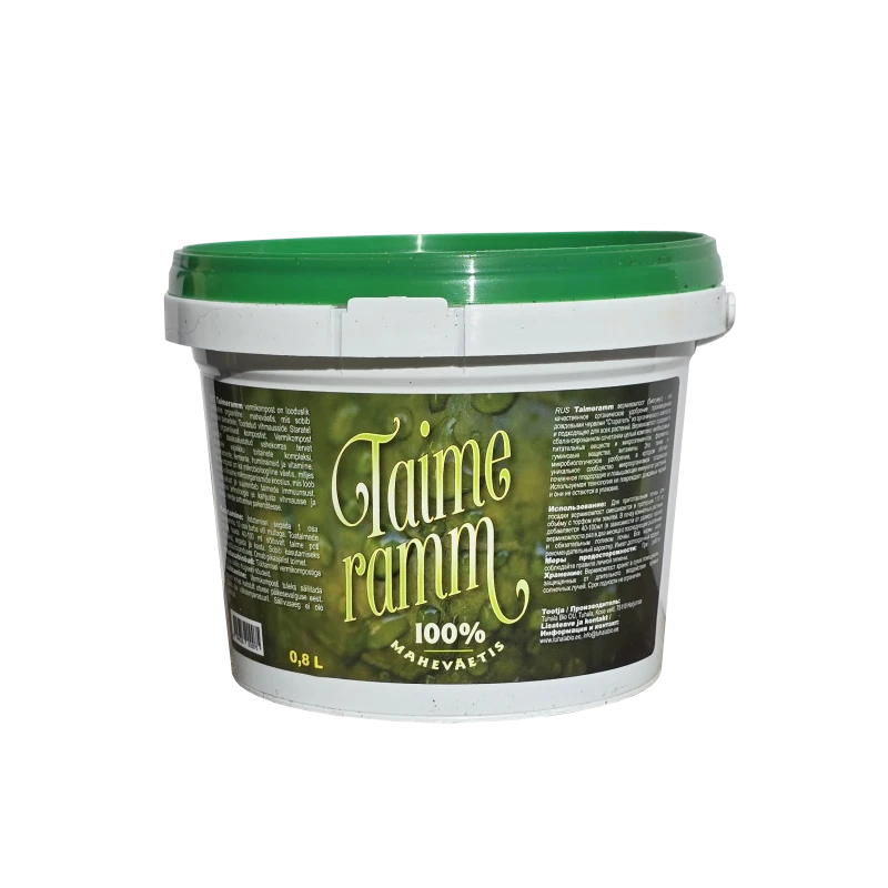 Organic fertilizer Taimeramm is vermicompost or biohumus, which earthworms have produced from organic cattle manure compost with their life activity. Earthworms enrich it with numerous enzymes in their digestive system. Earthworm manure contains a large amount (up to 16% dry matter) of humic substances, microorganisms beneficial to the soil and plants. Vermicompost is distinguished from other organic fertilizers by its increased content of water-soluble nitrogen, phosphorus, and potassium. Micronutrients are also in a more absorbable form.