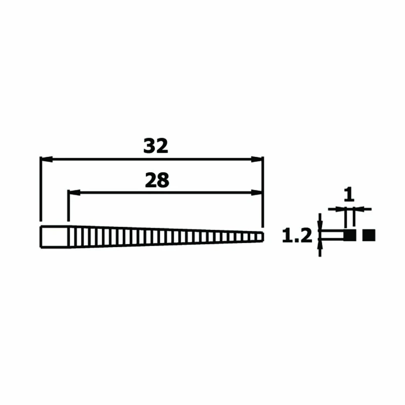 - Jaws taper to a fine tip, approximately 1.2 mm in size.