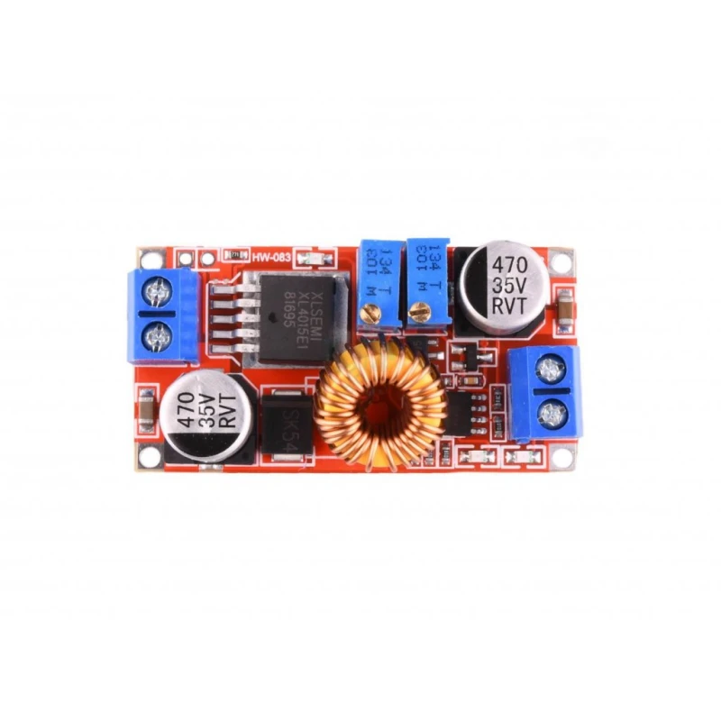 This step-down DC-DC converter module, based on the XL4015 chip, converts a higher DC input voltage into a lower, adjustable DC output voltage.