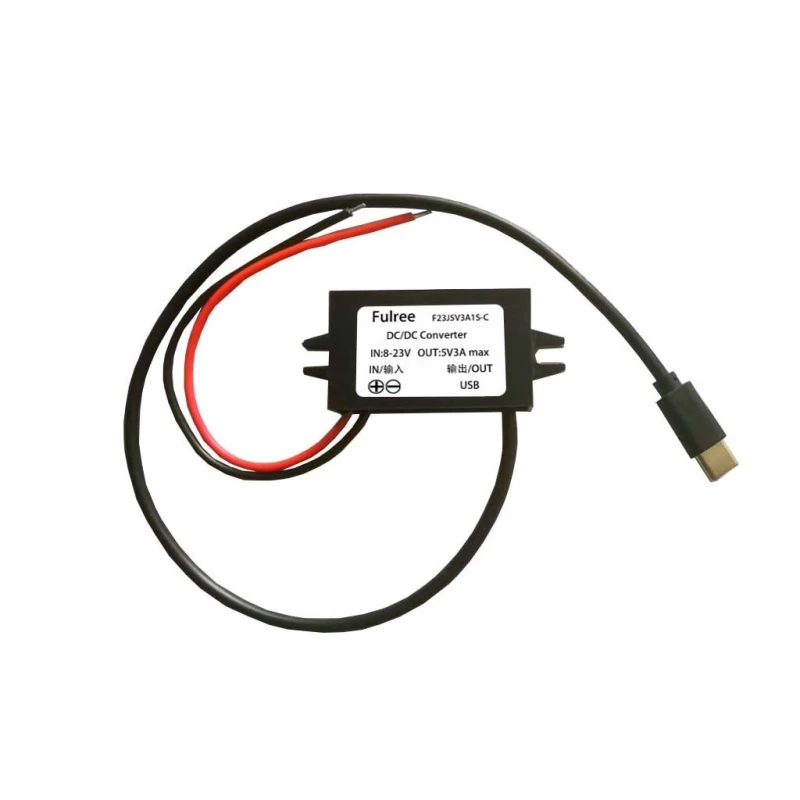 This waterproof sealed step-down converter provides a stable 5V power output via a standard USB-C connector, suitable for automotive environments.