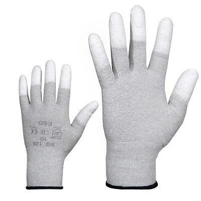 ANTISTATIC ESD WORK GLOVES MADE OF NYLON, FINGER TIPS COATED WITH POLYURETHANE.