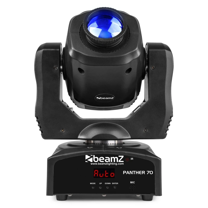 Panther 70 on võimas liikuv pea koos 70W erkvalge LED-allikaga. Varustatud värvi- ja goborattaga. Goborattal on 7 erinevat gobot (+ avatud) ja värvirattal 7 värvi (+ valge). Panther 70 liikuv pea töötab DMX-iga, iseseisvas režiimis või IR-juhtimisega. DMX-režiimis töötades saate valida 2 erineva DMX-kanali režiimi vahel.