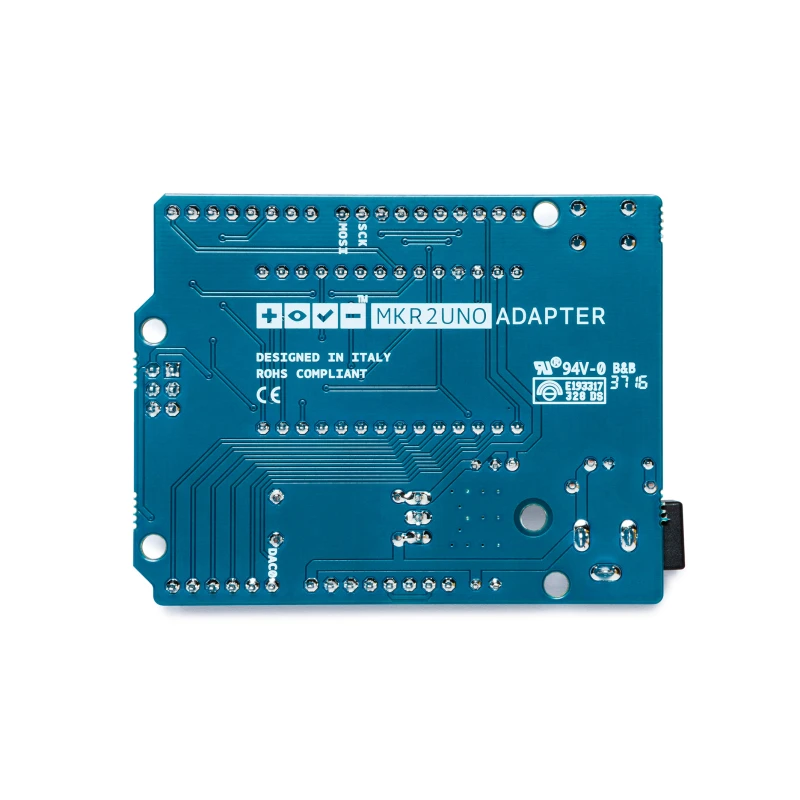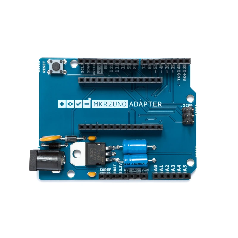 The MKR2UNO Adapter allows you to turn your Arduino UNO form factor based project into a MKR based one without too much effort! You can so upgrade your project with a powerful board with integrated LiPo battery charger.