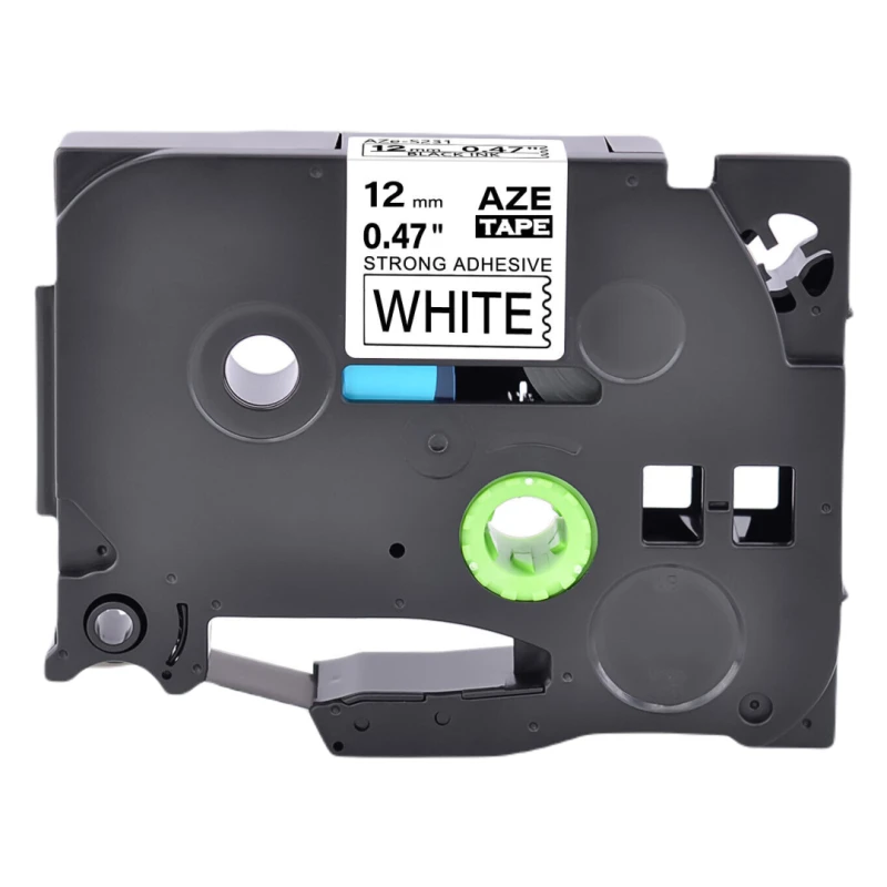 Compatible laminated labeling tape for Brother P-touch printers, designed as a replacement for the TZe-S231 model. This 12mm tape features a specialized, enhanced adhesive for superior performance on difficult surfaces.