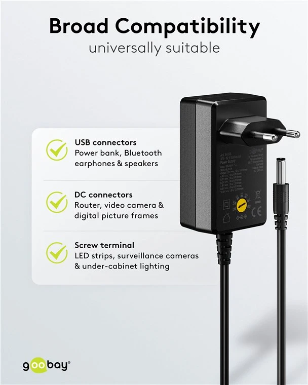 The Goobay 64568 Universal Power Supply is designed for charging and powering a wide range of electrical devices.