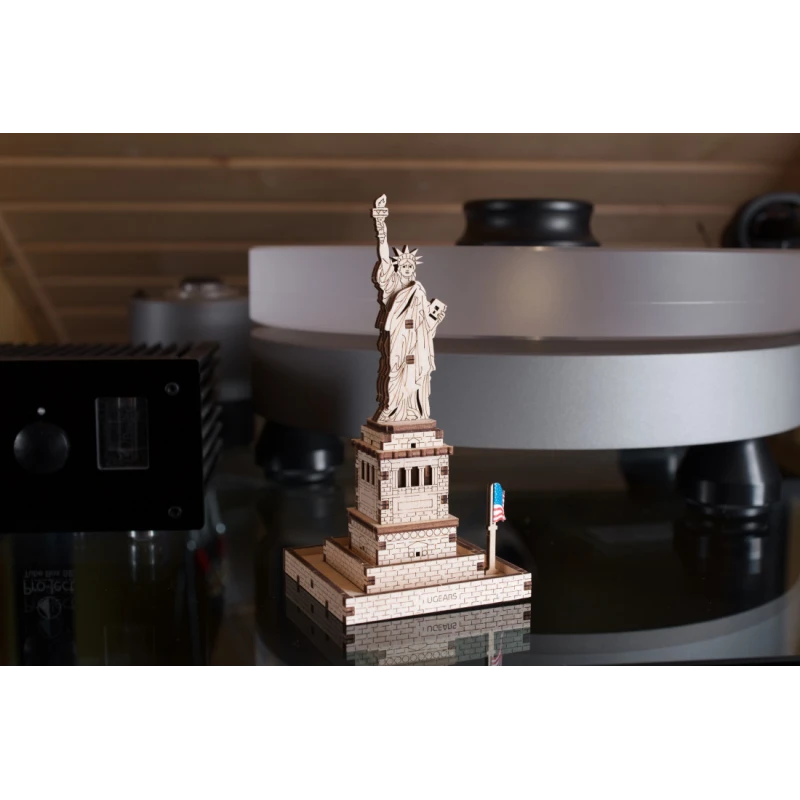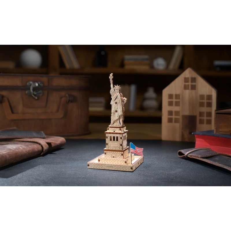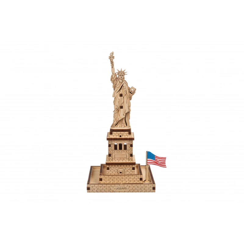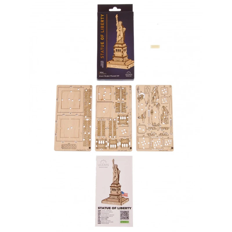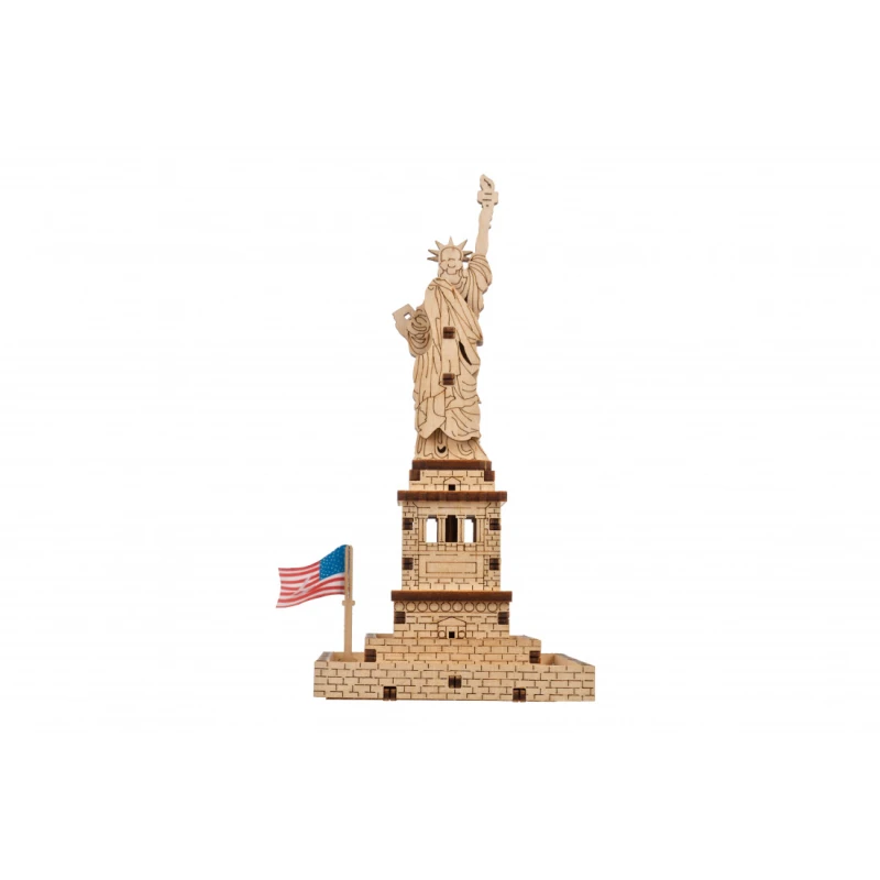 Part of the World Cities collection, the Ugears Statue of Liberty model is a 145mm tall 1:575 scale wooden DIY model of the iconic figure. With 46 composite wood pieces, the Statue of Liberty is rated "Easy" and can be built in about 25 minutes. No glue or special tools are needed to build the model, just slide the pieces out of their pre-laser cut boards and snap them together. Illustrated instructions in 11 languages (English, German, Ukrainian, French, Polish, Spanish, Portuguese, Japanese, Italian, Chinese, and Korean) guide you through your construction. This static 3D puzzle is perfect for display on a shelf or table in your home or office.