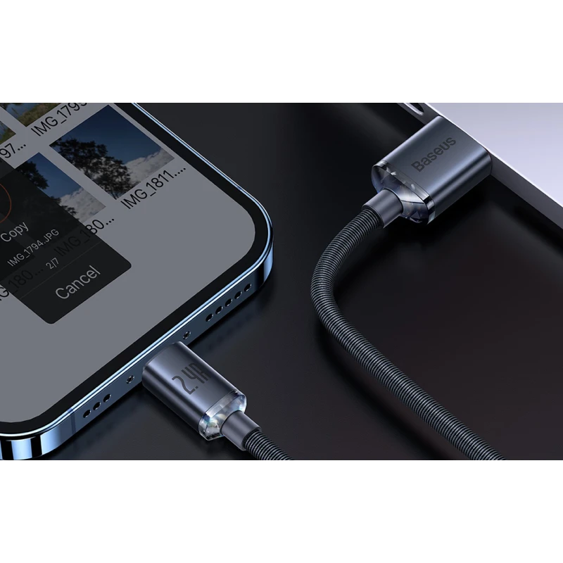 USB-A Apple Lightning cable 1.2m 2.4A Crystal Shine black
