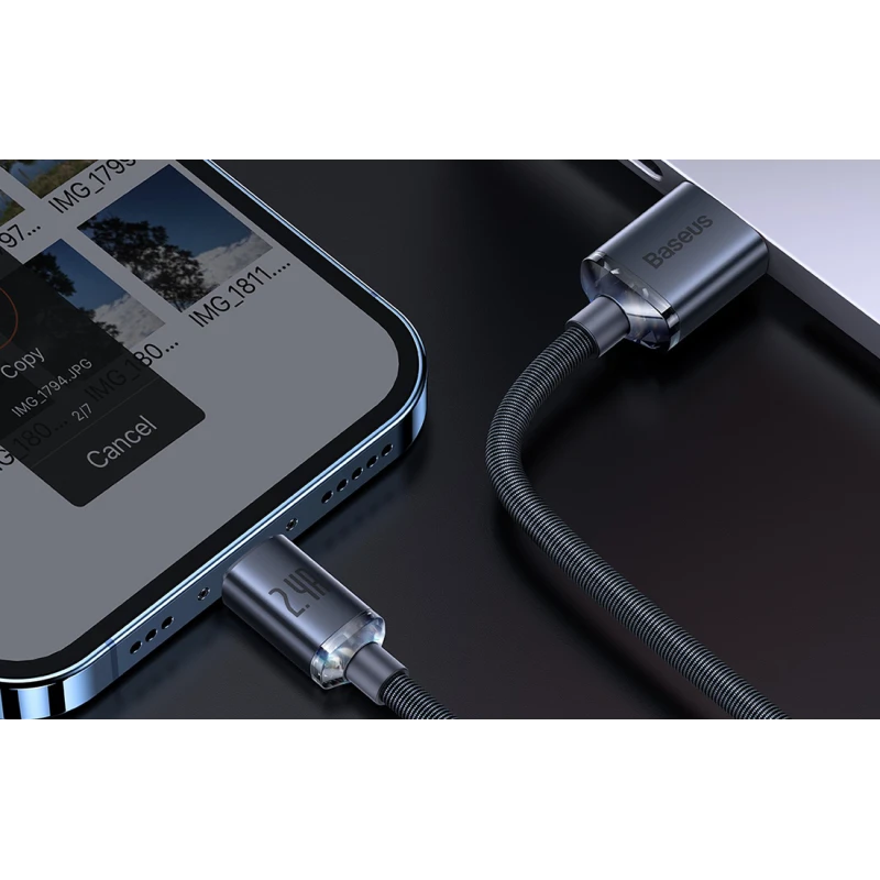 The Baseus Crystal Shine Series USB Type A to Lightning cable (CAJY000101) is engineered for reliable, high-speed data transfer and efficient charging of compatible Apple devices.