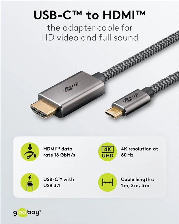 Ideal for high-quality image and sound transmission from USB-C-enabled devices to HDMI input displays, such as for gaming, home cinema, or work.