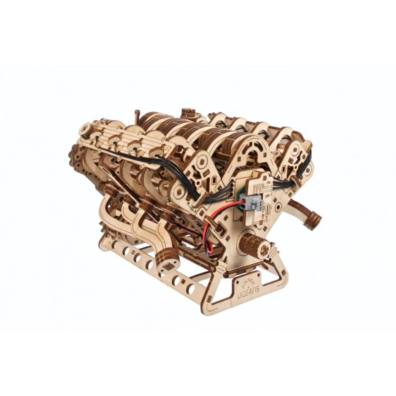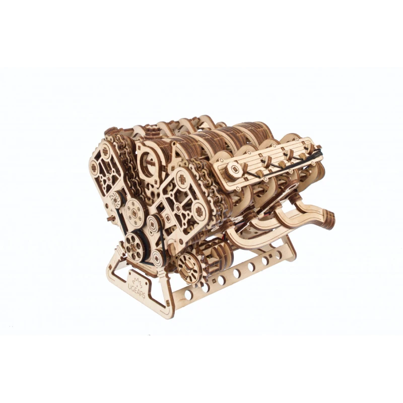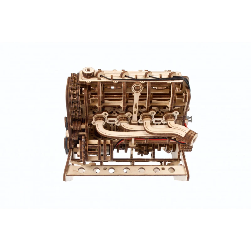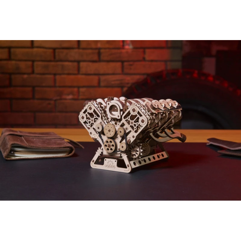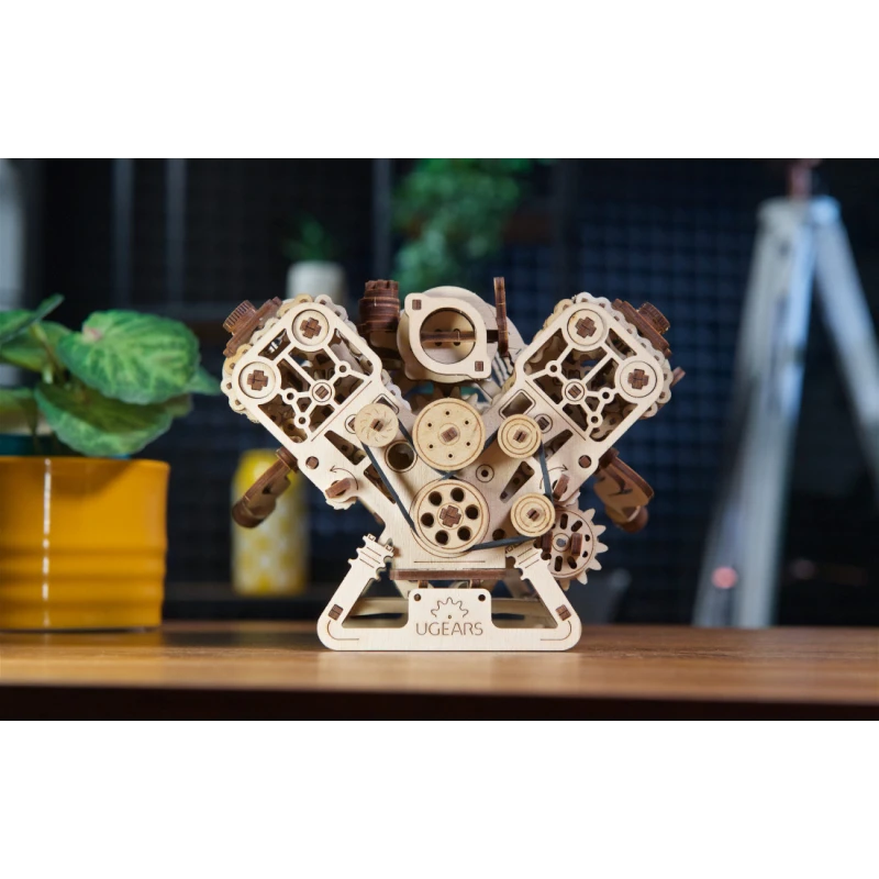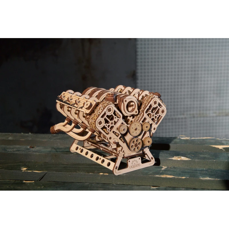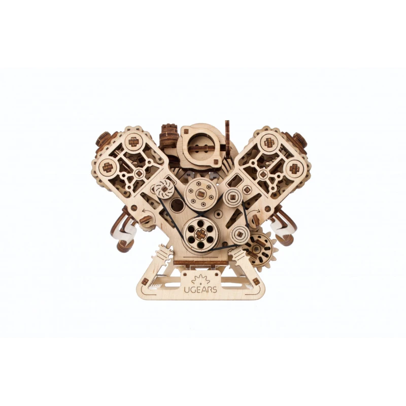 The Ugears V8 Engine model is the perfect choice for enthusiasts of mechanics and automotive models. This 1:6 scale wooden model allows you to observe the workings of the iconic internal combustion engine. Patented by French engineer Léon Levavasseur in 1902, the V8 engine is known for its low vibration and high horsepower, popular in muscle cars, but also used in powerboats, airplanes, and motorcycles.