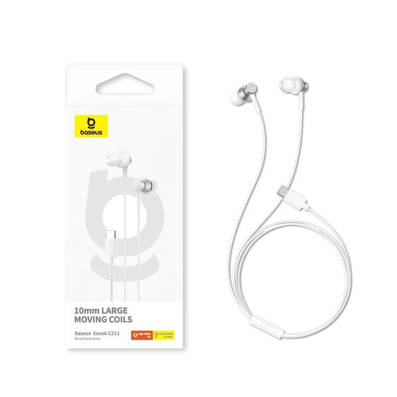 The Baseus Encok CZ11 is a pair of modern wired in-ear headphones featuring a Type-C connector, designed to deliver high-fidelity audio through an ergonomic and durable build.