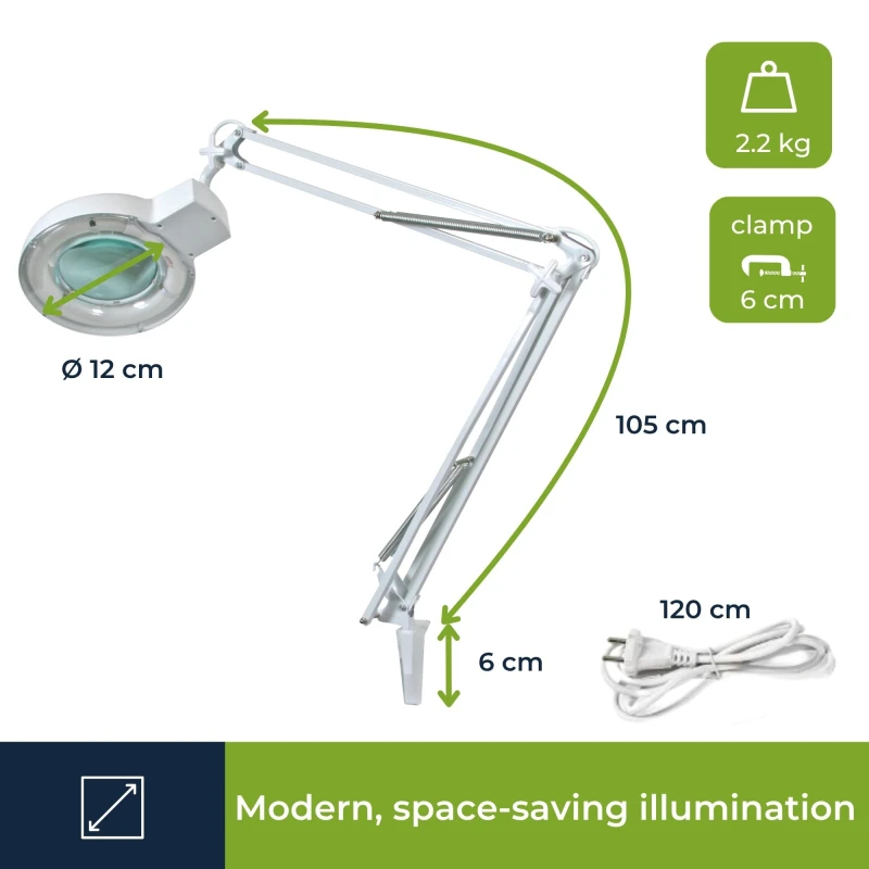 Featuring a flexible swivel arm, the lamp can be effortlessly positioned at the perfect height and angle to maintain a comfortable working posture. The sturdy table clamp ensures a secure attachment to any work surface, freeing up both hands for detailed tasks such as manicures, model building, or fine crafts.